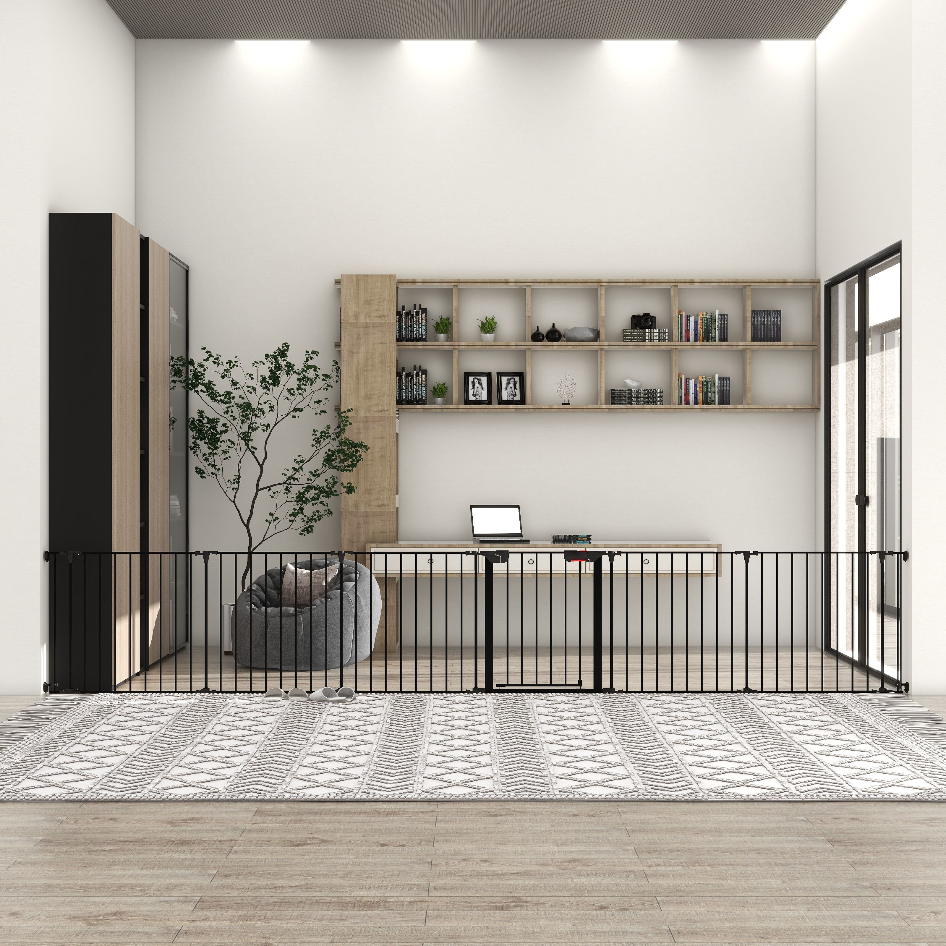4-IN-1METAL SAFETY GATE: 1. Pet Gate - It can be used as a freestanding pet gate when you set it up as a circular enclosure; 2. Safety Fence - Suitable to use around fireplaces, grills, wood burning stoves, Christmas tree, etc. 3. Play yard: Set up sectioned off areas in your home for your toddlers or pets; 4. Barrier: Solid construction make this a great option for creating room dividers; 5. Baby Gate - Great for wide spaces, angled openings, hallway, doorway or bottom of stairs