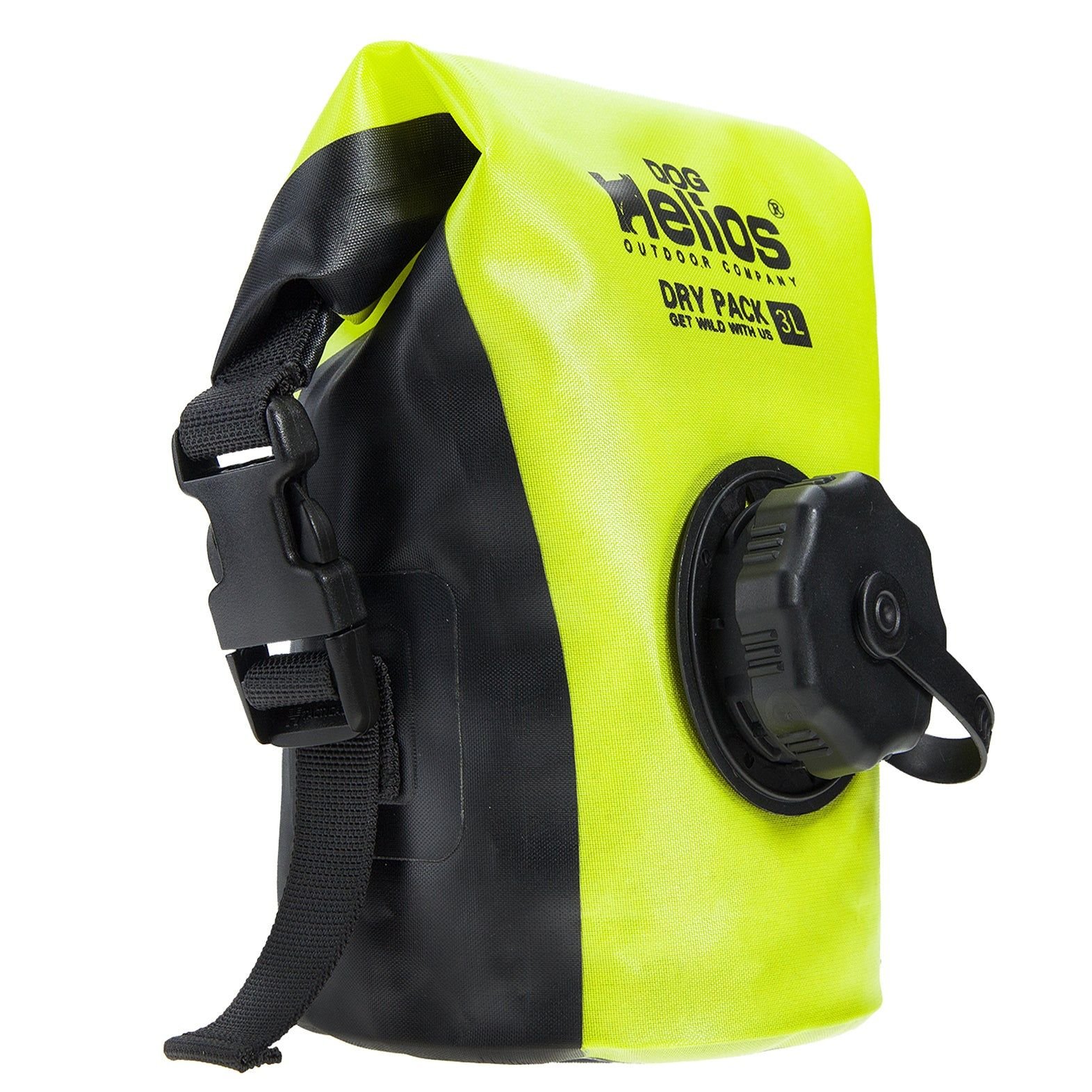 The Dog Helios 'Grazer' Waterproof Outdoor Travel Dry Food Dispenser Bag is composed of a specially developed composite material that is completely Waterproof, Lightweight and Durable. Geared with a reinforced nylon carry handle and 3 Buckle Straps that both attaches to any Backpacks or Luggages and further secures and keeps Cat and Dog Food and Treats completely Dry. The top of the Travel Grazer Food and Treat Dispenser rolls up for placement of consumables and rolls shut and Velcros into place preventing any food from spilling or exiting and further Buckles shut to preserve food freshness and food security. Features a waterproof Push and Twist dial opener for proper food dispensing while keeping food fresh and secure. Great when used during Hikes, Travels or while On-The-Go. Carries up to 3 Liters of food or treats. Available in Multiple Colors.