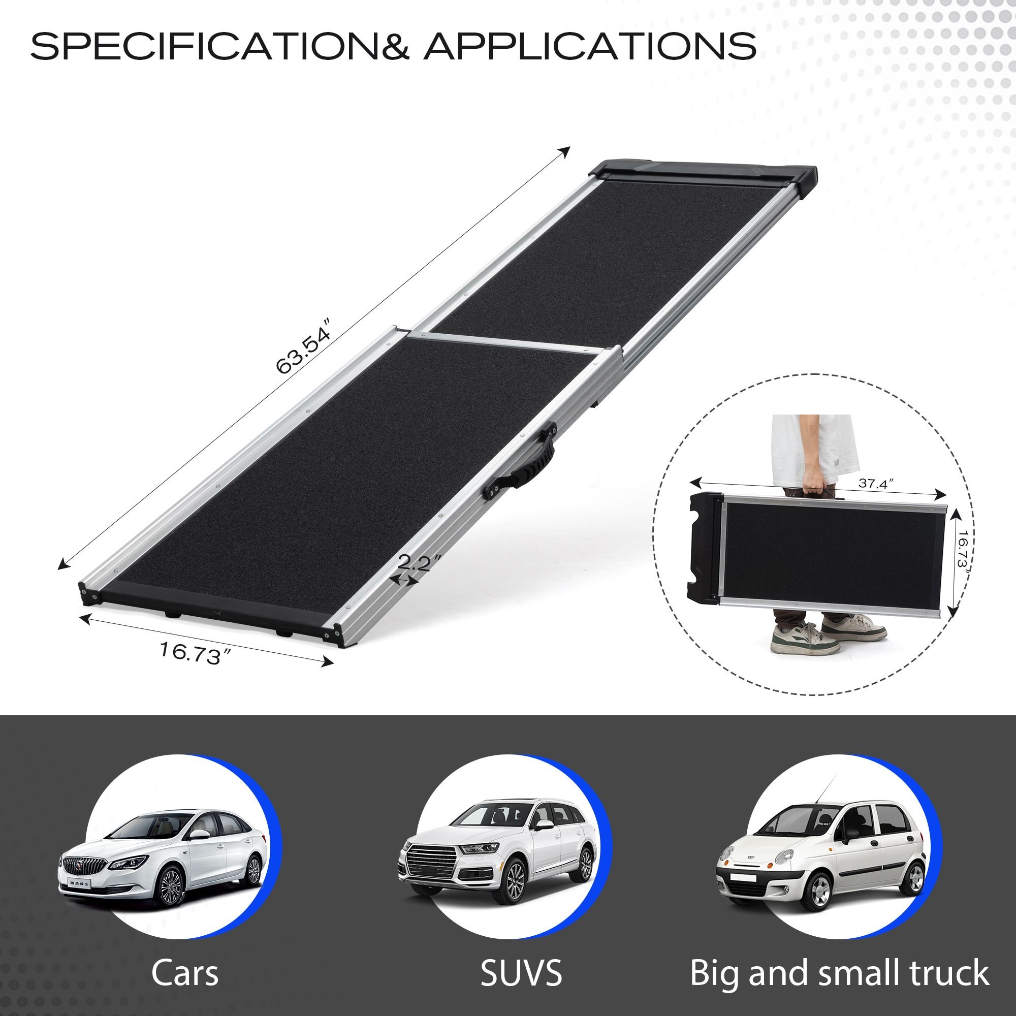 [Portable and Space-Saving Ladder]: This dog climbing ladder is crafted in 2 collapsible sections, allowing for convenient storage and transportation. It features handles on both the sides and the top, ensuring it is easy to carry and won't consume excessive space within your vehicle.
