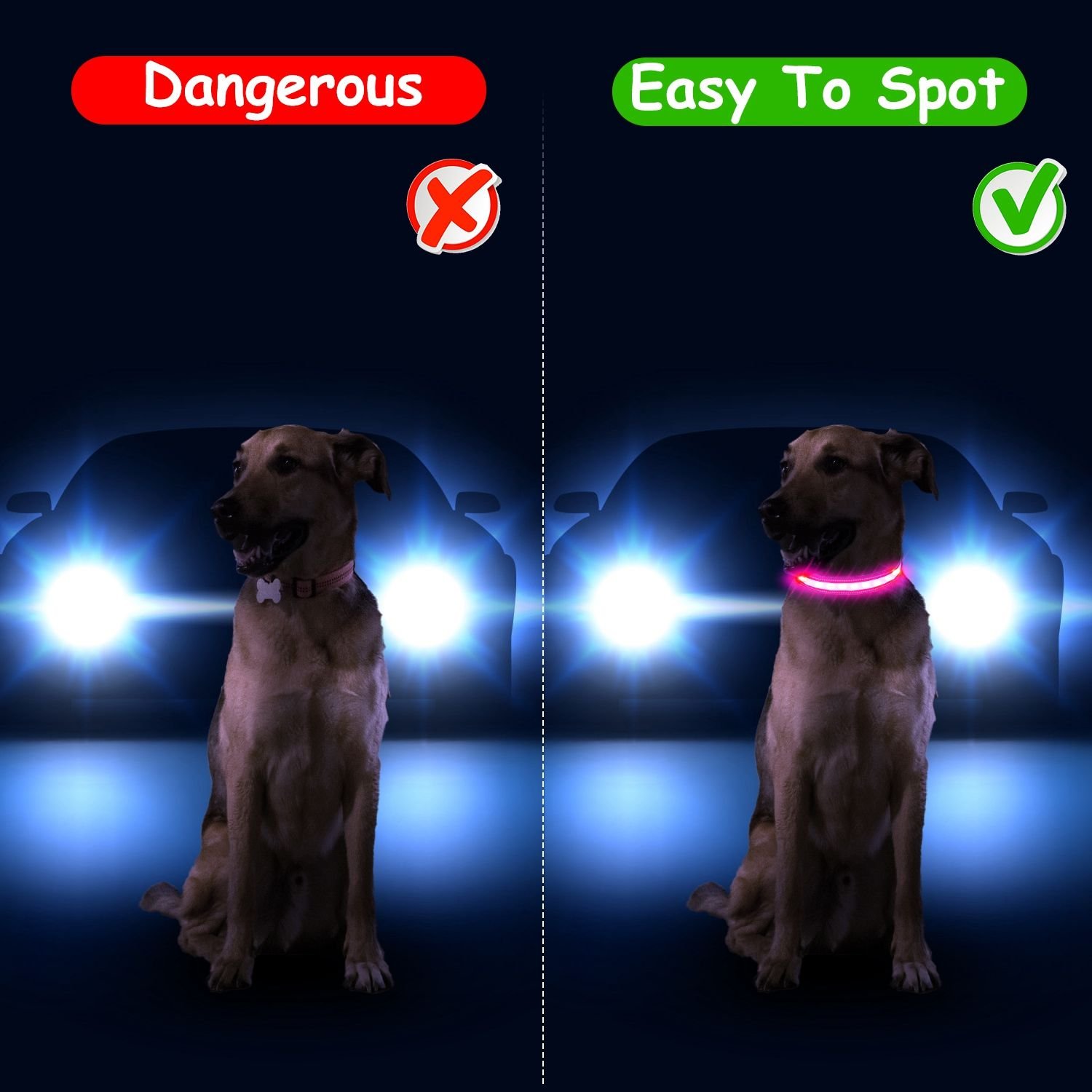 *IPX7 Waterproof Dog Collar*:The excellent IPX7 waterproof performance makes this lighted dog collar function well in harsh weathers like raining and snowing. Make sure that the charging port is well-sealed before use.